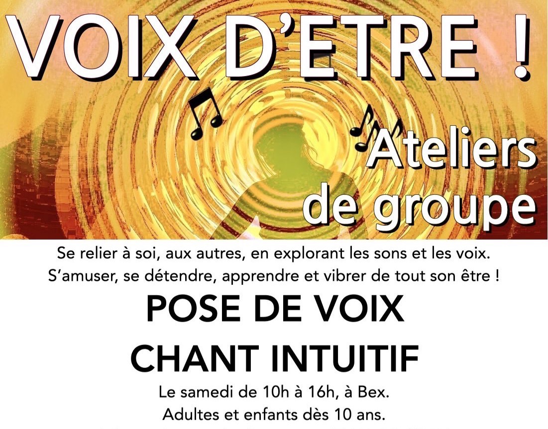 Atelier Voix d'Être ! Journées en petit groupe pour explorer les vibrations, les sons, la voix, le chant. Partager et développer une expression créative dans un cadre bienveillant.